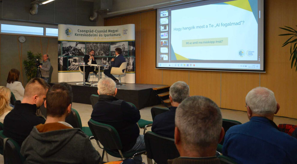 A kamarai székházban megtartott beszélgetést Dr. Kőkuti Attila, a Csongrád-Csanád Megyei Kereskedelmi és Iparkamara elnöke nyitotta meg, aki beszédében úgy fogalmazott, a vármegye gazdaságát és annak szereplőit vizsgálva korábban összeállítottak egy jövőképet, amellyel iránymutatást kívántak biztosítani a vállalkozásoknak. Ebben az anyagban két fő sarokpont rajzolódott ki: az informatika és a robotika fontossága. Kiemelte, nem lehet eléggé hangsúlyozni, hogy ezek alkalmazása megkerülhetetlen. Átalakítják az életünket, csakúgy, mint a mesterséges intelligencia alapú programok is. Célunk az ilyen előadásokkal, hogy ezekre a változásokra felkészítsük a résztvevőket – zárta az elnök.