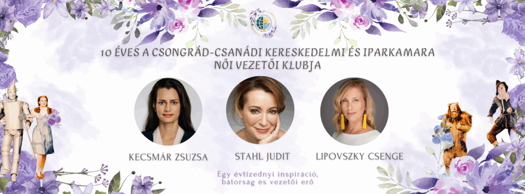Stahl Judit, Kecsmár Zsuzsa és Lipovszky Csenge – három inspiráló nő, három külön világ, három erő, ami vállalkozóként is bennünk él: a bátorság, az ész és a szív. 10 évvel ezelőtt indult el a Csongrád-Csanádi Kereskedelmi és Iparkamara Női Vezetői Klubja. Azóta közösség, inspirációs forrás és támogatói tér lett mindazoknak, akik vezetőként, vállalkozóként helytállnak nap mint nap.