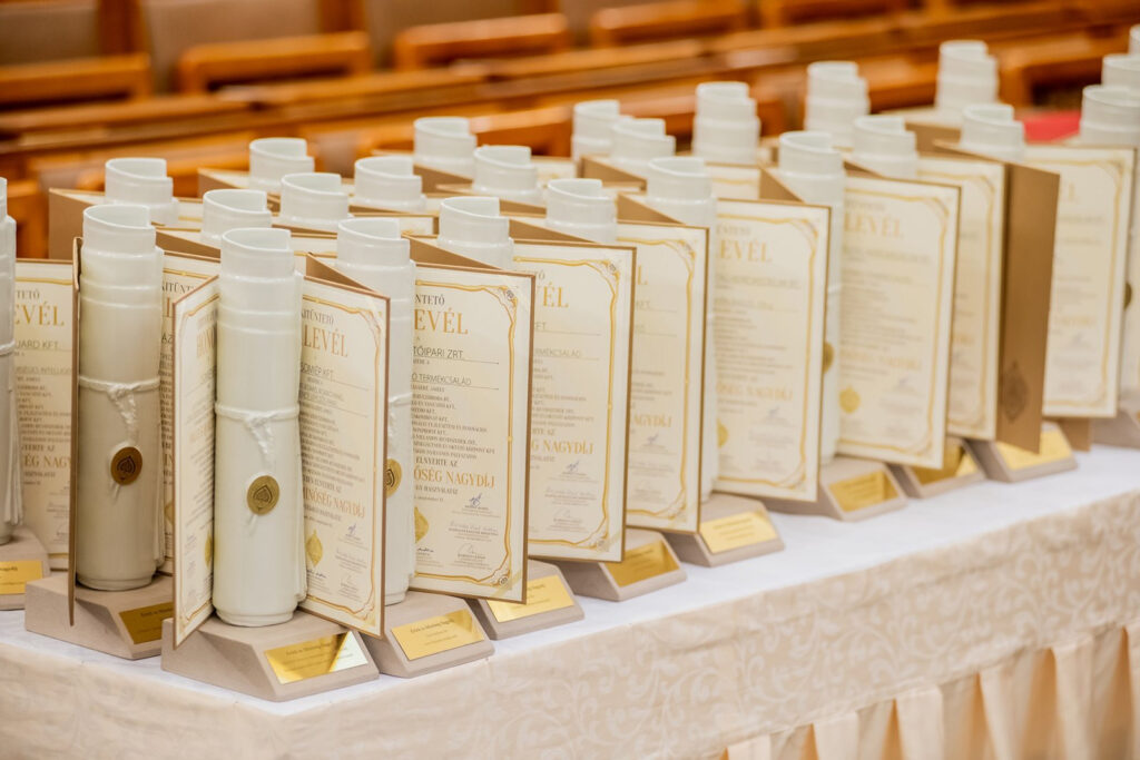 Átadták az Érték és Minőség Nagydíj Pályázat kitüntetéseit a Gazdaság Ünnepén, az Országház Főrendiházi Üléstermében szeptember 12-én. Idén a védjegyhasználatot és a kitüntetést 32 pályázó 38 pályázata érdemelte ki, több mint 30 különböző területen tevékenykedő vállalkozás mutatta meg alkotóerejét, kreativitását. Az elmúlt évekhez hasonlóan idén is a mezőgazdasághoz kötődő termékek alkották a legnépesebb díjazotti csoportot, az ágazatot érintő ismert nehézségek ellenére. Új színt hozott az idei mezőnybe, hogy a pályázók 10%-a a robotika, a mesterséges intelligencia és az informatika területén alkotott kiemelkedőt. A díjazott pályázatok az ország 12 vármegyéjéből, egy pályázat pedig határainkon túlról, Erdélyből érkezett. Az ünnepségen beszédet mondott és a kitüntetéseket átadta: Latorcai János, az Országgyűlés alelnöke, és Farkas Sándor, az Agrárminisztérium miniszterhelyettese. A Kiírói Tanács örömmel tapasztalta, hogy egyrészről jelentős volt az újonnan díjazott pályázók száma, másrészről pedig azt, hogy mára már 200 partnerük több, mint 1000 terméke, termékcsoportja, szolgáltatása használja az Érték és Minőség Nagydíj Tanúsító Védjegyet.