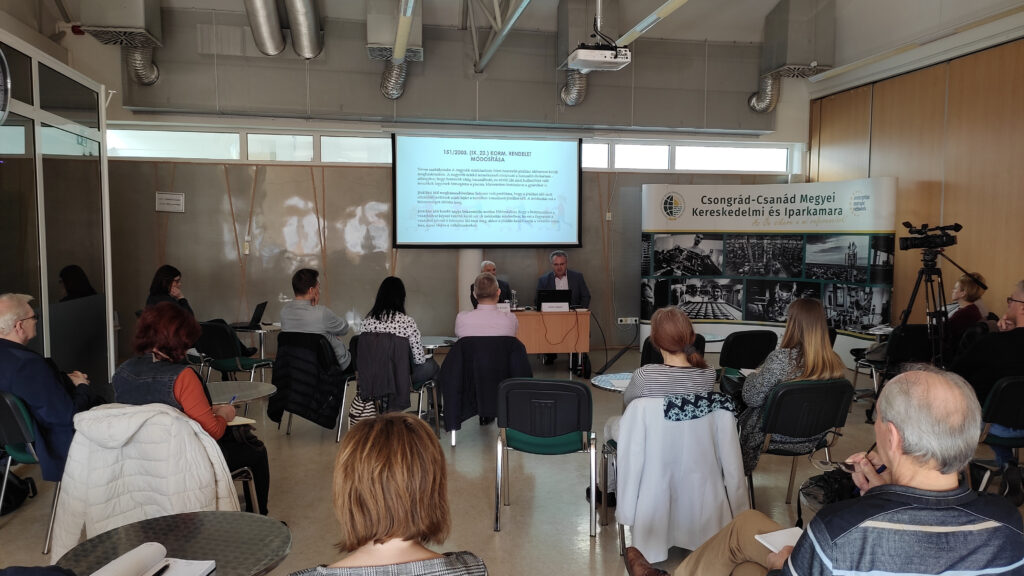 Vállalkozásoknak rendezett fogyasztóvédelmi fórumot kamaránk március 13-án Szegeden. A rendezvényen Petrik Sándor, a Csongrád-Csanád Vármegyei Kormányhivatal Műszaki Hatósági Főosztály osztályvezetője tartott előadást a fogyasztóvédelemmel kapcsolatos jogszabályváltozások tapasztalatairól, míg Horváth Károly, a Csongrád-Csanád Megyei Békéltető Testület elnöke a fogyasztóvédelemmel kapcsolatos vitás ügyek leggyorsabb, ugyanakkor a fogyasztók számára ingyenes rendezéséről, a békéltetésről tartott tájékoztatót. Az előadásokat követően kérdésekre válaszoltak a szakemberek.