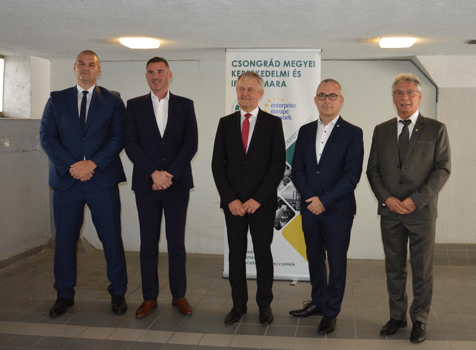 Tóth Gábor szolgáltatási alelnök, Gellért Ákos ipari alelnök, dr. Kőkuti Attila elnök, Palotás Sándor kereskedelmi alelnök és Török László kézműipari alelnök