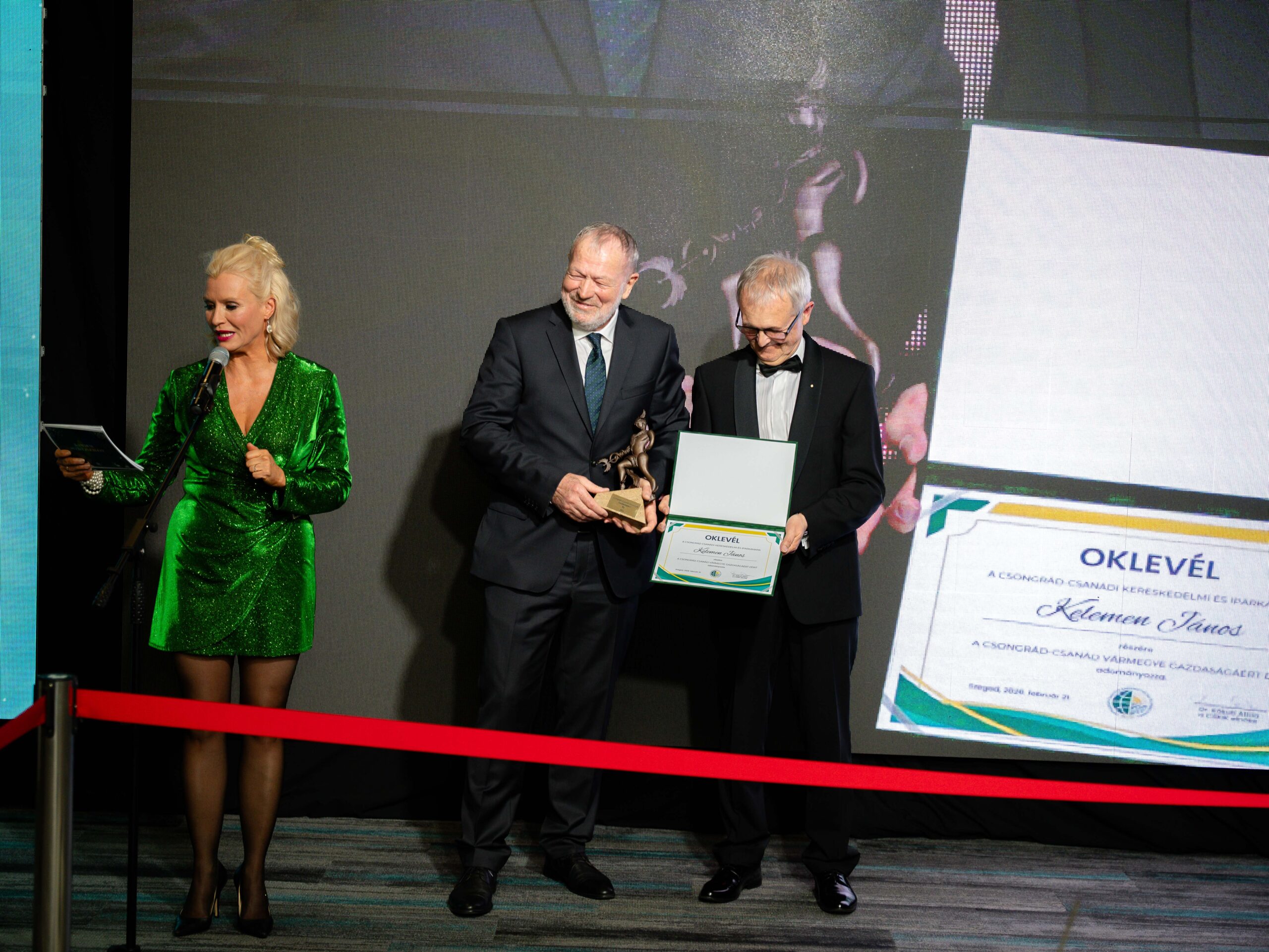 Mindemellett a hagyományoknak megfelelően az esten sor került a Csongrád-Csanád Vármegye Gazdaságáért Díj átadására is, amelyet idén Kelemen János vehetett át. Kelemen János több mint négy évtizede meghatározó szereplője a térség kereskedelmi életének. Pályáját a Szeged és Vidéke ÁFÉSZ-nél kezdte, majd kulcsszerepet vállalt abban a folyamatban, amelynek eredményeként létrejött a COOP Szeged Zrt. Vezetése alatt a vállalat jelentős fejlesztéseket hajtott végre, modernizálta üzlethálózatát, és példamutató módon ötvözi a hagyományőrzést az innovációval. A közösség iránti elkötelezettsége, a térség gazdasági súlyának erősítése és az úttörő kereskedelmi megoldások bevezetése méltóvá tették őt erre a rangos elismerésre.