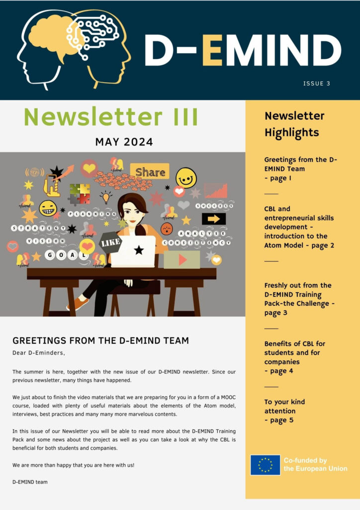Örömmel jelentjük be, hogy elérhető a D-EMIND projekt harmadik hírlevele! Az új kiadás számos izgalmas témát tartalmaz, többek között a Challenge-Based Learning (CBL) és az Atom Modell bemutatását, valamint a D-EMIND Training Pack legfrissebb híreit.