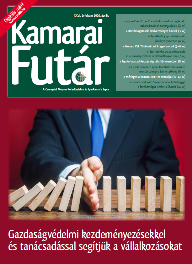 Már elérhető üzleti magazinunk, a Kamarai Futár legfrissebb száma, melynek középpontjában a koronavírus hatásai állnak. A lapban a járvány vállalkozásokat érintő hatásairól, az ehhez kapcsolódó kamarai szolgáltatásokról, jogszabályváltozásokról is olvashat. Emellett több interjút is készítettünk a témában.