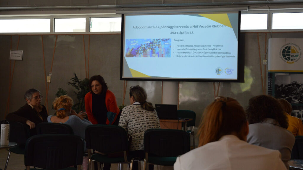 Novákné Halász Anna klubvezető köszöntőjében arra hívta fel a figyelmet, hogy a vállalkozói létben milyen fontos az egyes pénzügyi lehetőségek előteremtése és kihasználása, illetve a hatékony adózási formák igénybevétele.