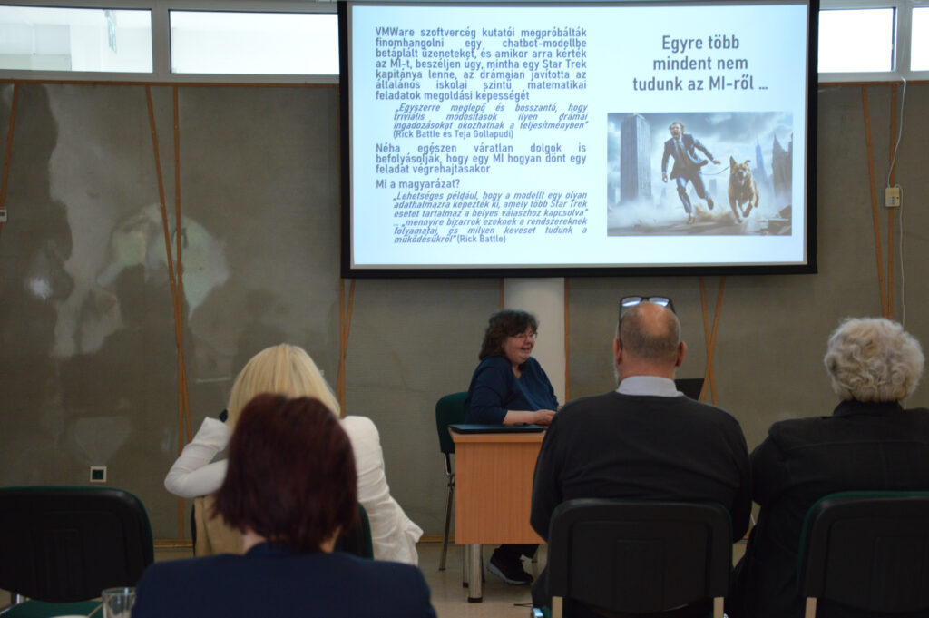 Az április 25-ei program második felében a hallgatóság osztotta meg a tapasztalatait a mesterséges intelligencia használatáról, többen prezentálták is, hogy mi mindenre alkalmazzák.