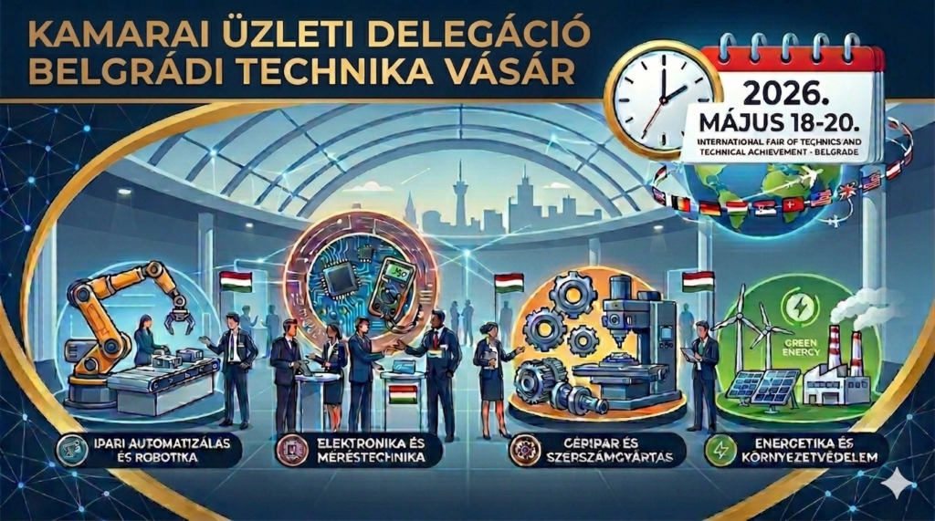 A magyar exportőr kis- és középvállalkozások exportpiaci jelenlétének fejlesztése és üzleti kapcsolatrendszerük bővítése céljából a Magyar Kereskedelmi és Iparkamara Vállalkozásfejlesztési Projektjének keretében a Nemzetgazdasági Minisztérium támogatásával és a területi kereskedelmi és iparkamarák közreműködésével 2026-ban támogatott részvételi lehetőséggel üzleti delegációkat szervez külföldi szakvásárokra.