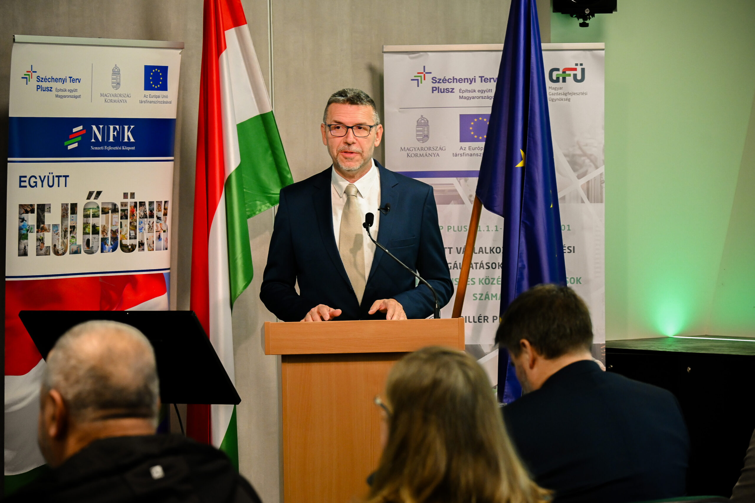 A résztvevők többek között Gedei Gábor, a Nemzeti Fejlesztési Központ vezető kormányfőtanácsosának előadásában ismerhették meg a GINOP Plusz aktuális forráslehetőségeit, míg Kámány Dóra, a DIMOP Plusz Irányító Hatóság osztályvezetője a digitális megújulás szerepét és lehetőségeit mutatta be. A finanszírozási eszközök gyakorlati oldaláról Nyitrai Gergely, a Magyar Fejlesztési Bank EU Partnerkapcsolatok Osztály Üzleti Divíziójának vezetője adott átfogó képet.