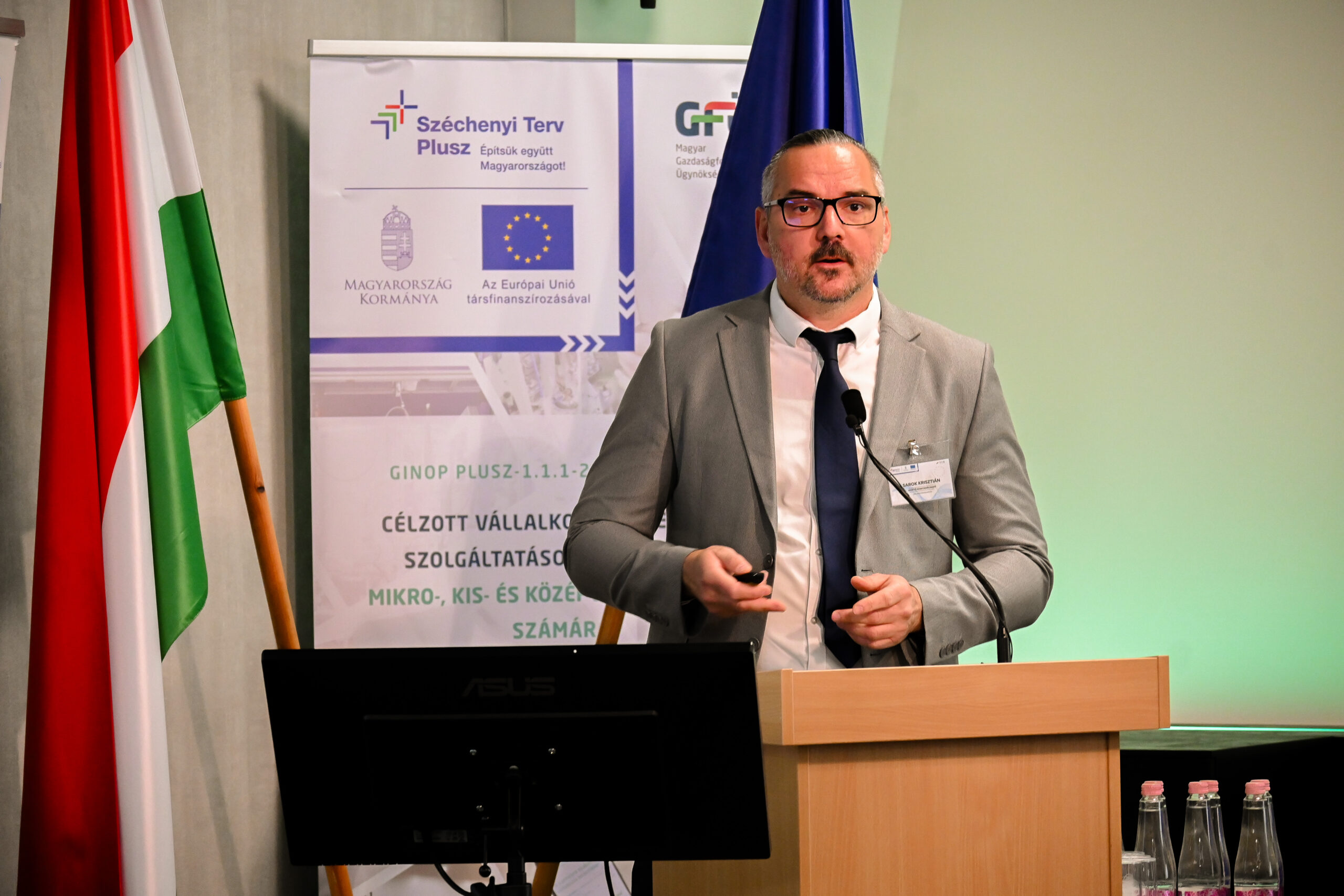 A vállalkozásfejlesztési szolgáltatások jelentőségéről Dr. Balla Gergely, a Magyar Gazdaságfejlesztési Ügynökség szakmai igazgatója beszélt, míg Sarok Krisztián, a Széchenyi Programiroda képviseletében a pályázati folyamat lépéseit – az ötlettől a megvalósításig – ismertette.