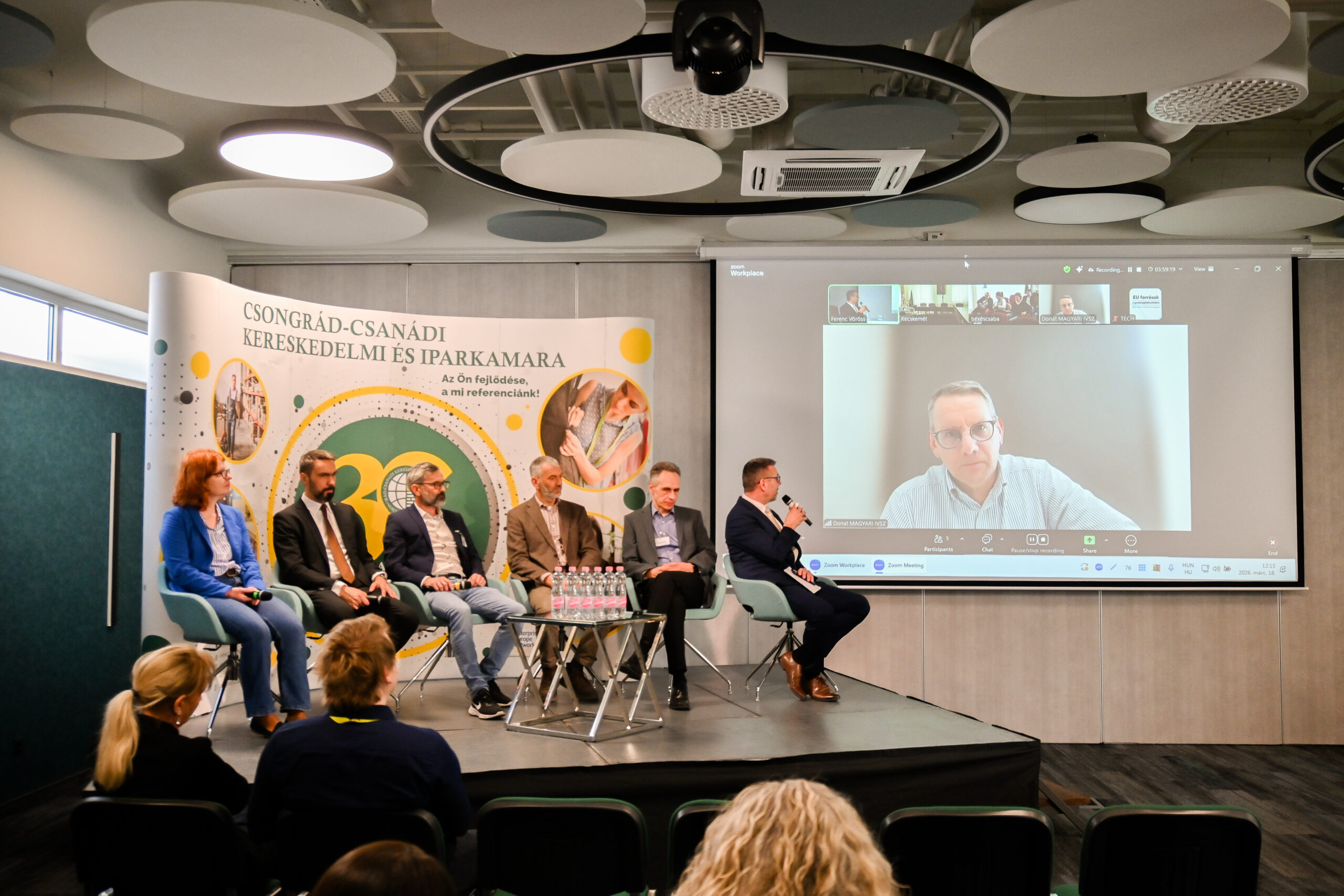 A rendezvény egyik kiemelt eleme a digitalizációról, innovációról és kutatás-fejlesztésről szóló panelbeszélgetés volt, amelyet két felvezető előadás előzött meg. Herbály István, a Magyar Kereskedelmi és Iparkamara Innovációs Bizottságának képviseletében a hazai kkv-k innovációs helyzetéről adott képet, míg Sóvágó Krisztina, a Nemzeti Kutatási, Fejlesztési és Innovációs Hivatal szakértője az S3 stratégiai illeszkedés szerepét ismertette a pályázatokban.