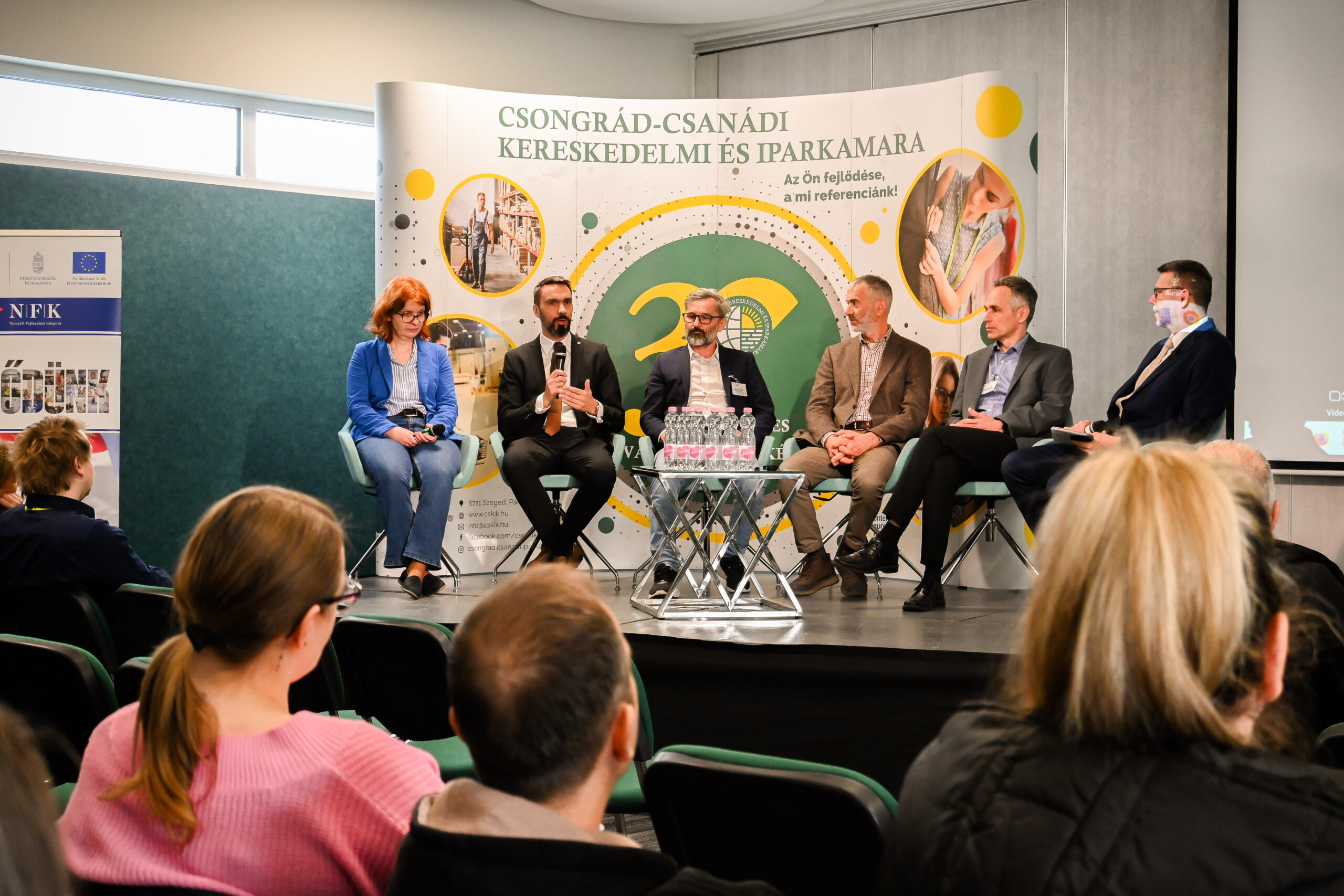A hazai kis- és középvállalkozások számára elérhető európai uniós forrásokról, valamint a fejlesztési lehetőségekről tartottunk átfogó szakmai rendezvényt március 18-án a szegedi székházunkban a Nemzeti Fejlesztési Központtal közösen. Az „EU források a gazdaságfejlesztésben” című eseményen a résztvevők első kézből kaphattak információkat a jelenleg elérhető és a közeljövőben megjelenő pályázatokról, valamint a sikeres fejlesztések kulcstényezőiről.